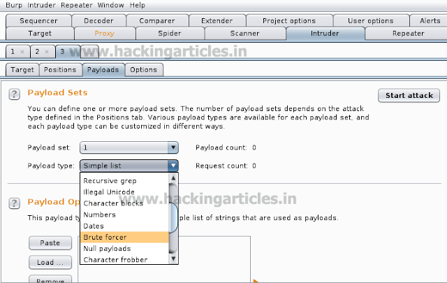 Now go to Payloads tab and select Brute Force in the Payload type option.