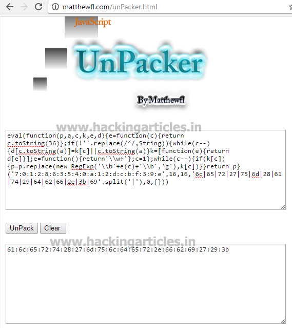 I searched about eval function on google and found that it is a java script. There can be code hidden behind it. So let’s unpack it with the javascript unpacker.