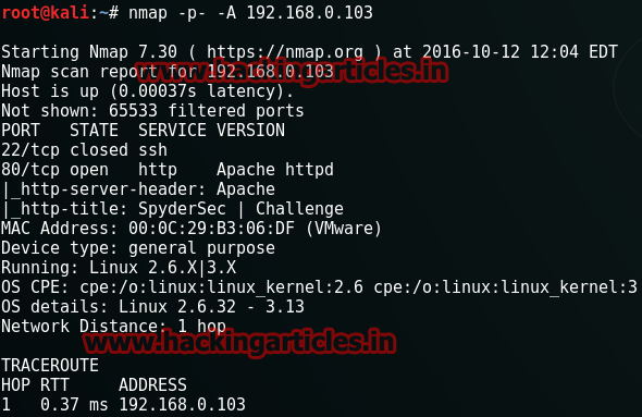 Nmap –A –p- 192.168.0.103