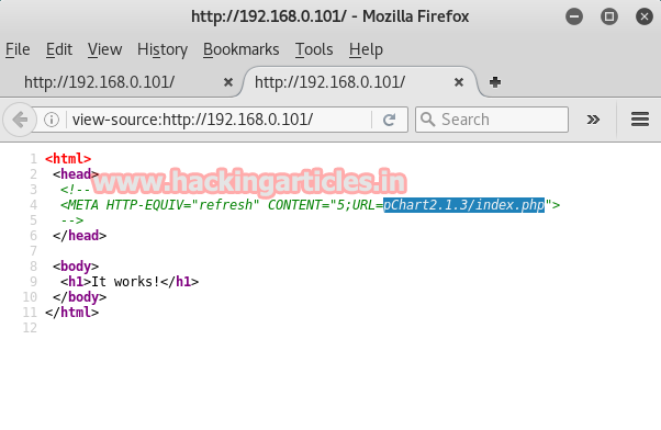 There is nothing on the webpage except it says “it works!”, lets have a look on its source code.