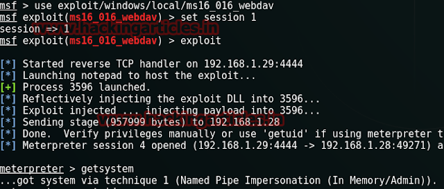 This module exploits the vulnerability in mrxdav.sys described by MS16-016. The module will spawn a process on the target system and elevate its privileges to NT AUTHORITY\SYSTEM before executing the specified payload within the context of the elevated process.