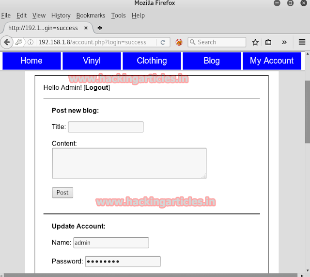 Now in the browser, go to my account tab and there you will find a login portal. Give the username and password of the admin and click on Login.