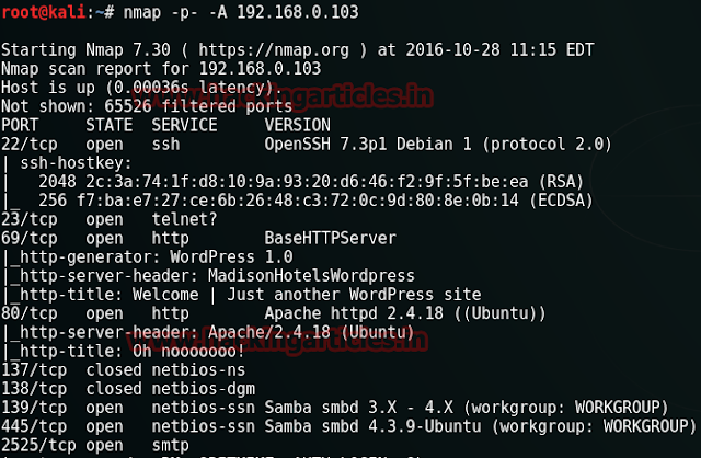 Let’s locate our targetOur target is 192.168.1.103. Scan it with nmap.