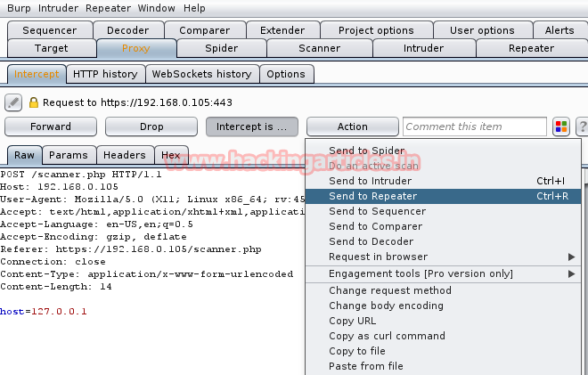 Now turn up burp suite and don’t forget to set manual proxy of your browser. Click to proxy tab and hit intercept is on button to capture the request of target. When this is done you will get fetched data under intercept window.