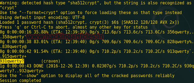 Now crack the password using by typing following command in terminal