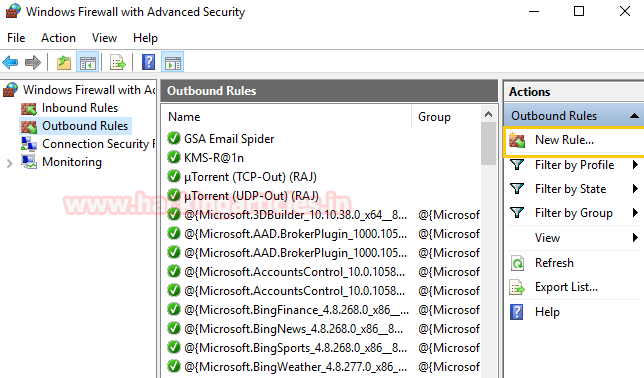 Go to outbound rules to configure new rule for firewall to add security layer in network to secure it form attackers.