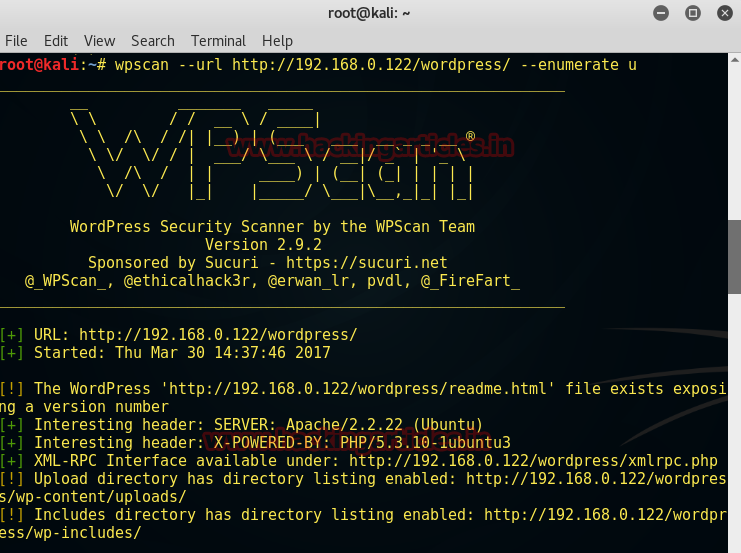 Wpscan –url http://192.168.0.122/wordpress/ --enumerate u