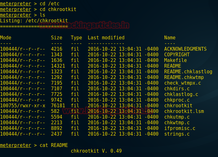 Meterpreter> cd chkrootkit