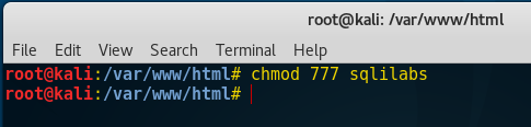 Now give permissions to sqlilabs folder using command “chmod 777 sqlilabs”