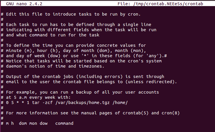We had open crontab using nano, the given below image shows crontab interface.