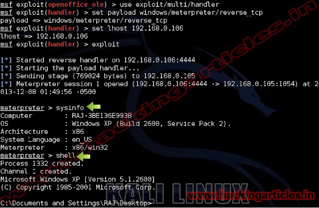 msf exploit (openoffice_ole)>set lhost 192.168.0.106 (IP of Local Host)