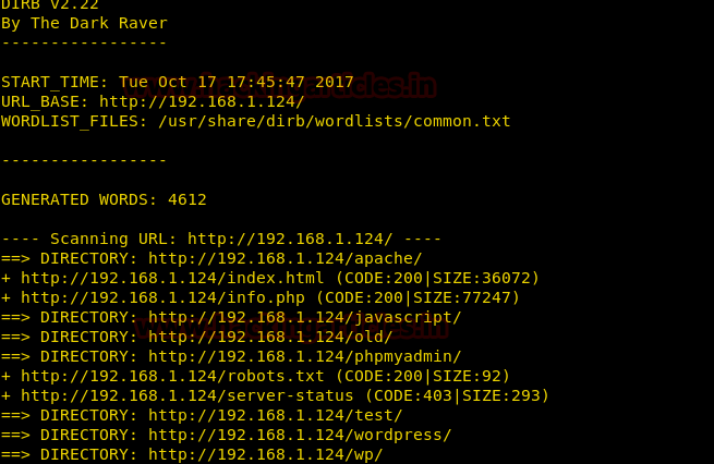 Now we use dirb to find the wordpress page, as the default page on the server is not based on wordpress.