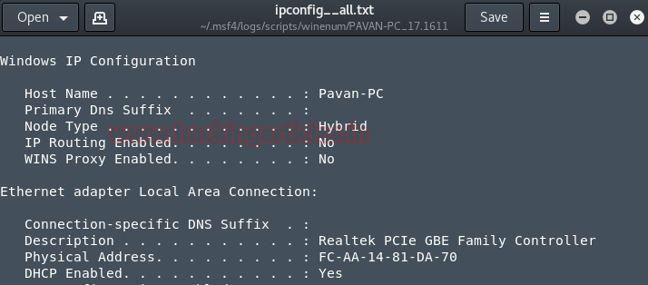 From given below image you can read the information stored inside ipconfig—all.txt file for network configuration.