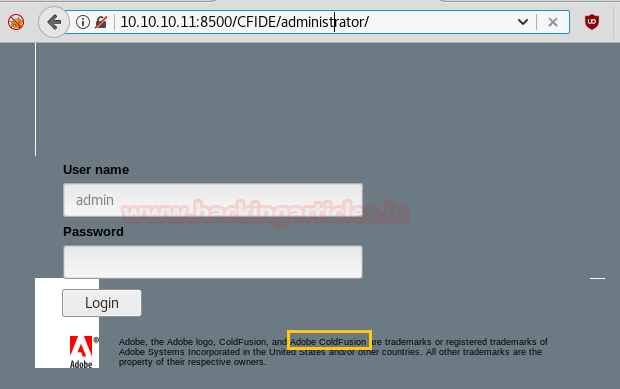 Administrator page contains admin login panel and required user and password for login which I don’t know. At the end of page I notice Adobe coldfusion is running in target system and if I took it as a hint then I will look for any exploit.