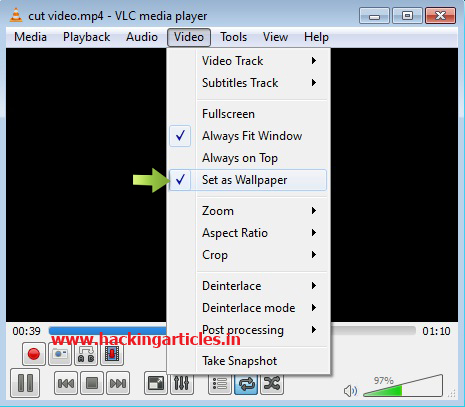 Now again go to the menu bar, select video Taband then 'set as Wallpaper'.