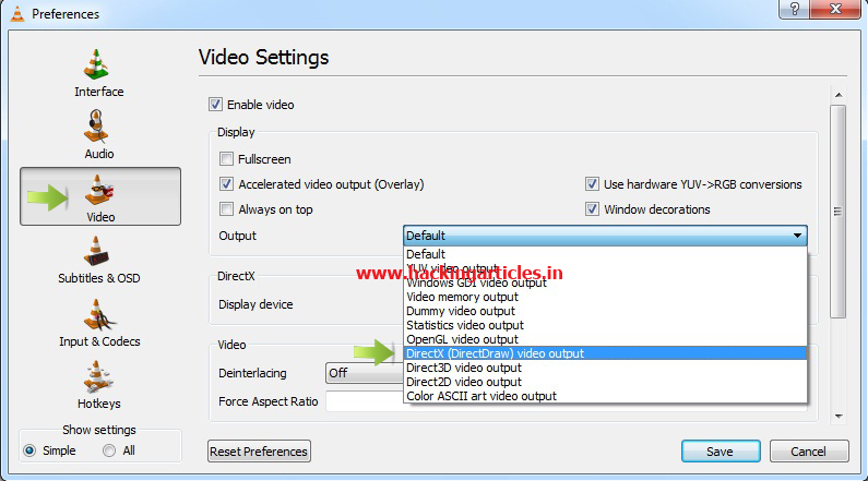 Open the Video Settings then select DirectX (DirectDraw) video output from the output option and then save.