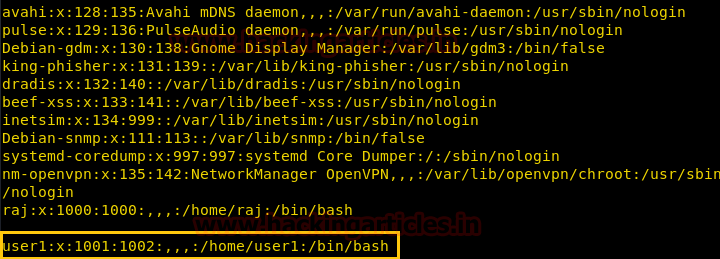 Let see what happens actually in /passwd file, when we add any user with adduser command. So here you can clearly match the following information from below given image.