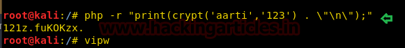 php -r "print(crypt('aarti','123') . \"\n\");"