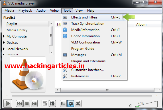 Select Effects and Filters from the Tool Tab present in the menu bar of the Media Player.