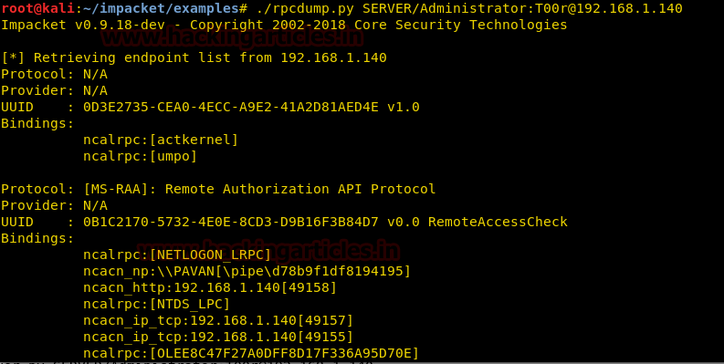 ./rpcdump.py SERVER/Administrator: T00r@192.168.1.140