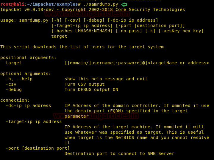 Syntax: ./samrdump.py [[domain/] username [: password] @] [Target IP Address]
