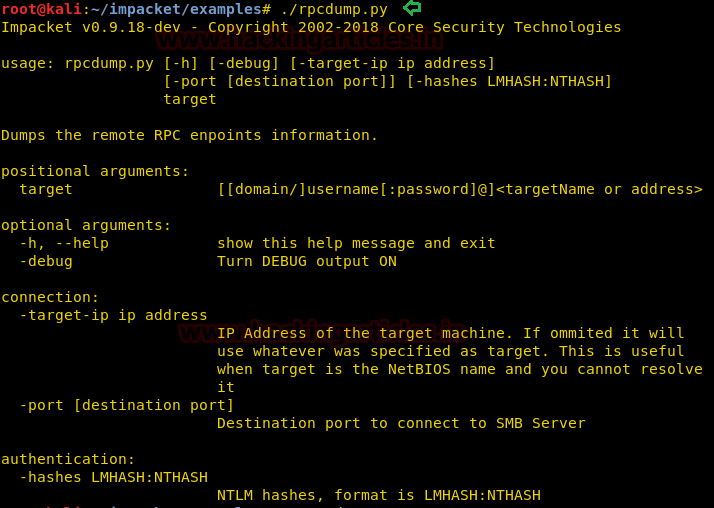 Syntax: ./rpcdump.py [[domain/] username [: password] @] [Target IP Address]