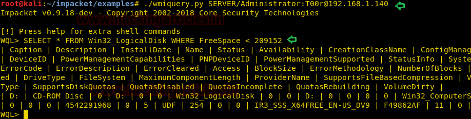 ./wmiquery.py SERVER/Administrator: T00r@192.168.1.140